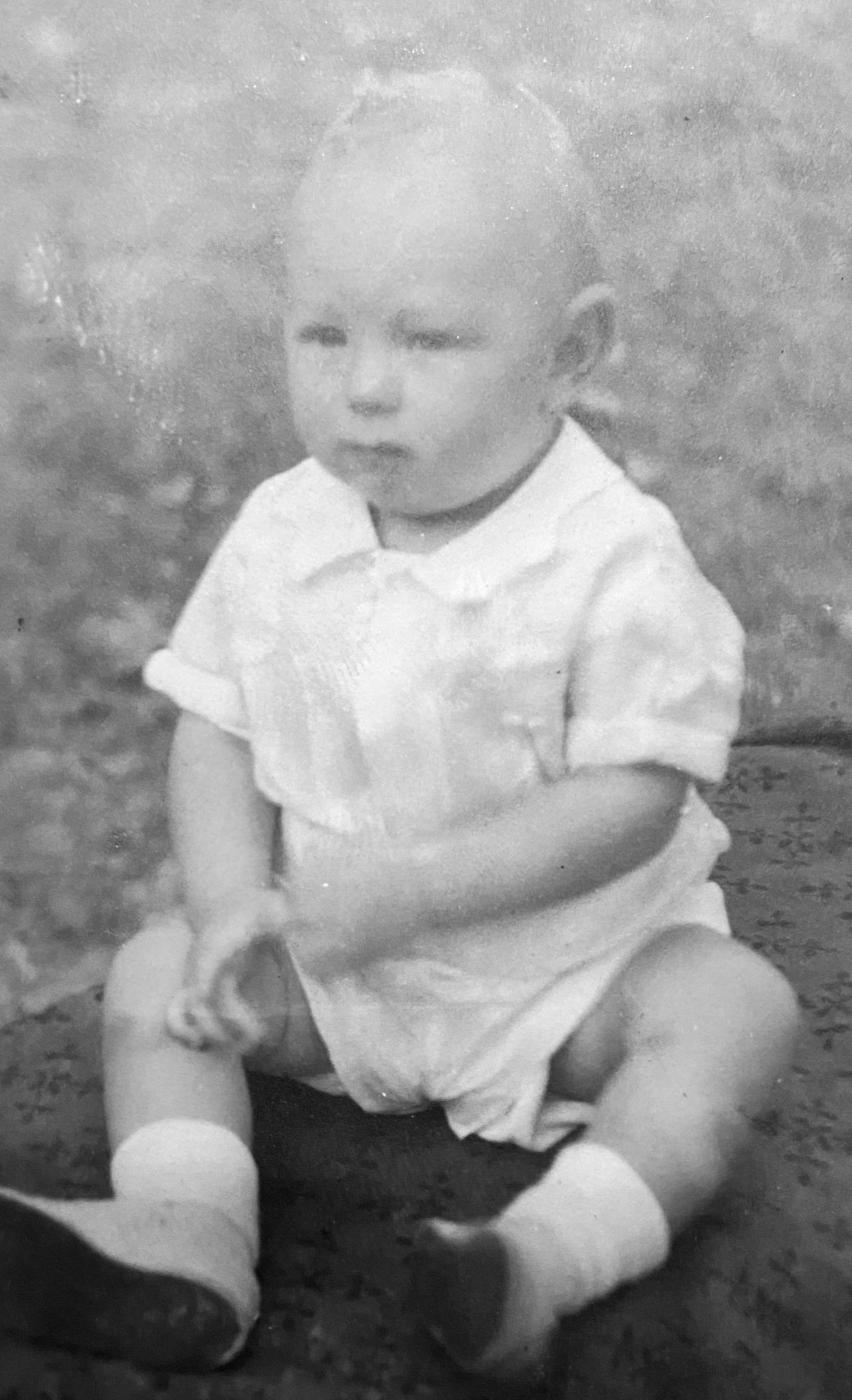 Not long after dad was born, the family realized that something was wrong with him physically. I will share more about this in the weeks to come but for now, let me explain it this way. Can you imagine picking up your newborn child under his arms, only to discover that nearly every time, a series of bruises would occur on and under his arms. These were hemorrhages and this was the first major clue that something was wrong with Dad physically. In this picture, you can see the bruising from the hemorrhages on his legs.